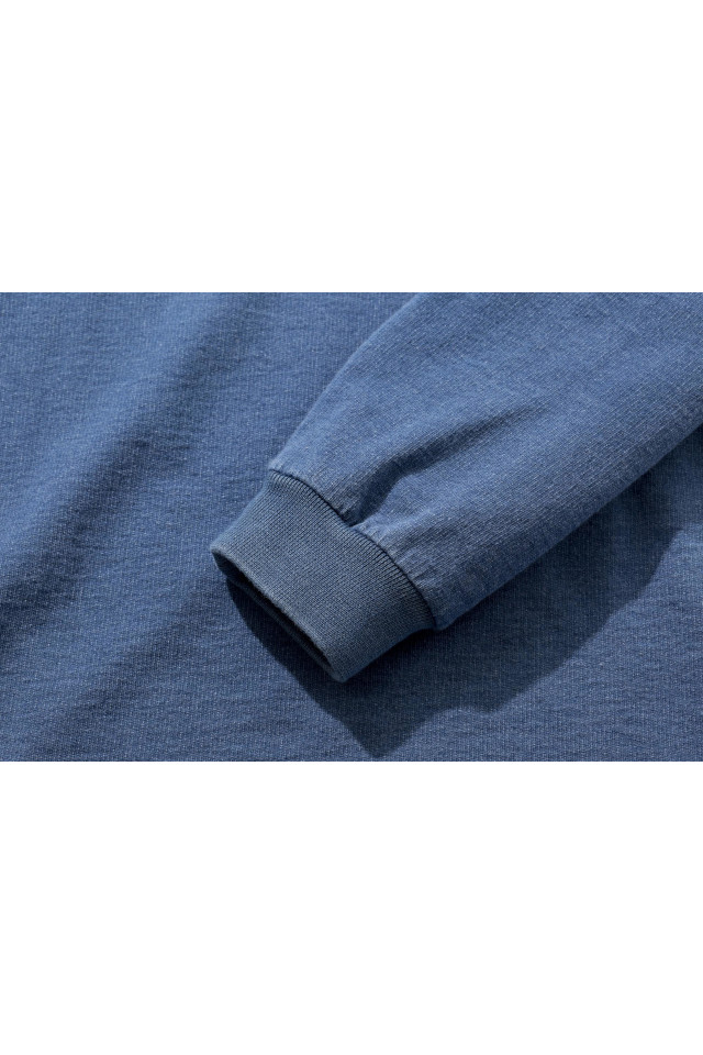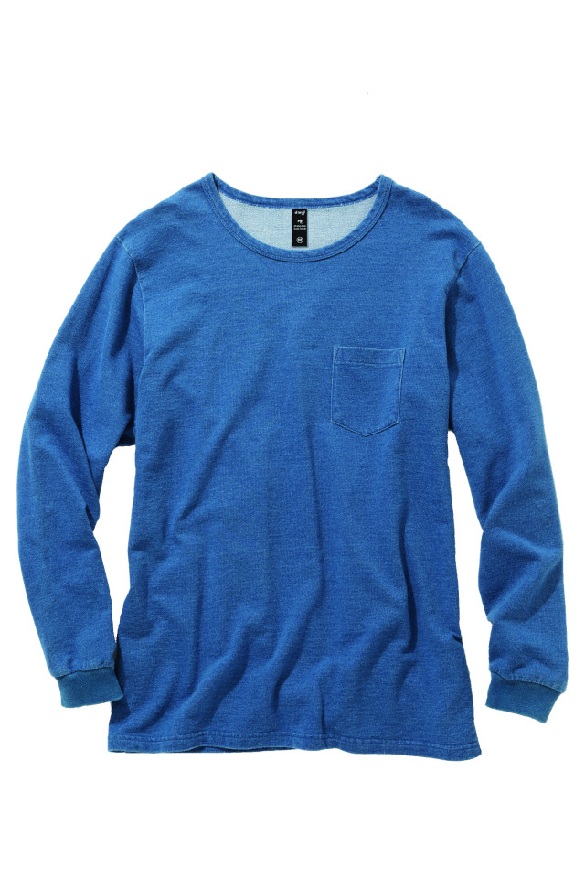 スタンダードな長袖T-シャツをニットデニム素材で。 シンプルなので幅広い着こなしを楽しめます。 綿100%の優しい肌触りにインディゴブルーの色合いもお楽しみ下さい。 ワークにもプライベートにも幅広く着用していただけます。 脇には消臭テープ付き。 パッケージもこだわったデザインと材質を使用してますので、プレゼント向けにも最適です。
